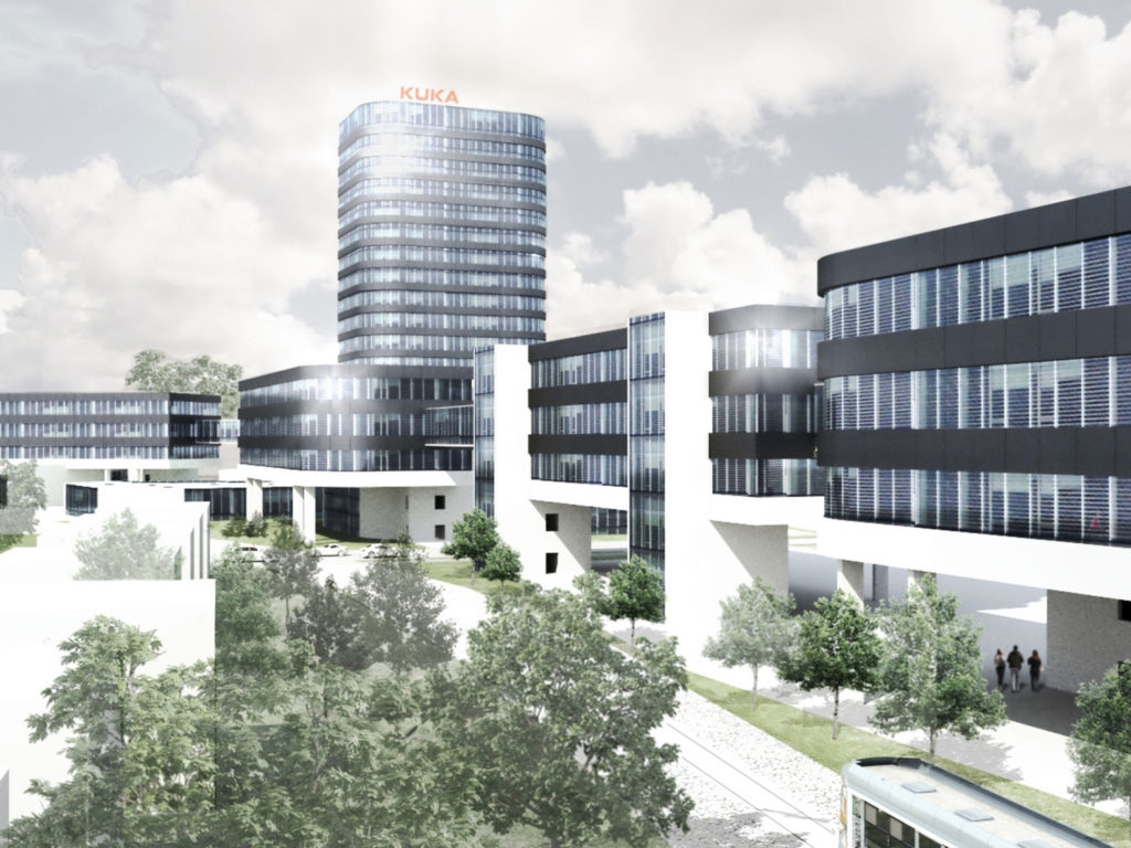 in einem vorgelagerten beschränkten wettbewerb konnte ds-architektur und stadtplanung mit der masterplanung, der geplanten baukosten und der bauabläufe überzeugen, und wurde mit der standorterweiterung augsburg beauftragt, bestehend aus parkhaus, produktionshalle, bildungszentrum und dem herzstück campus, der wiederrum eine einheit aus schulungs- und verwaltungsgebäuden sowie einem zentralen hochhaus besteht.